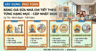Tại Xây dựng Phú Toàn, chúng tôi cung cấp dịch vụ sửa nhà trọn gói với đơn giá tính theo m2, giúp khách hàng dễ dàng tính toán ngân sách, cam kết không phát sinh và bảo hành dài hạn.