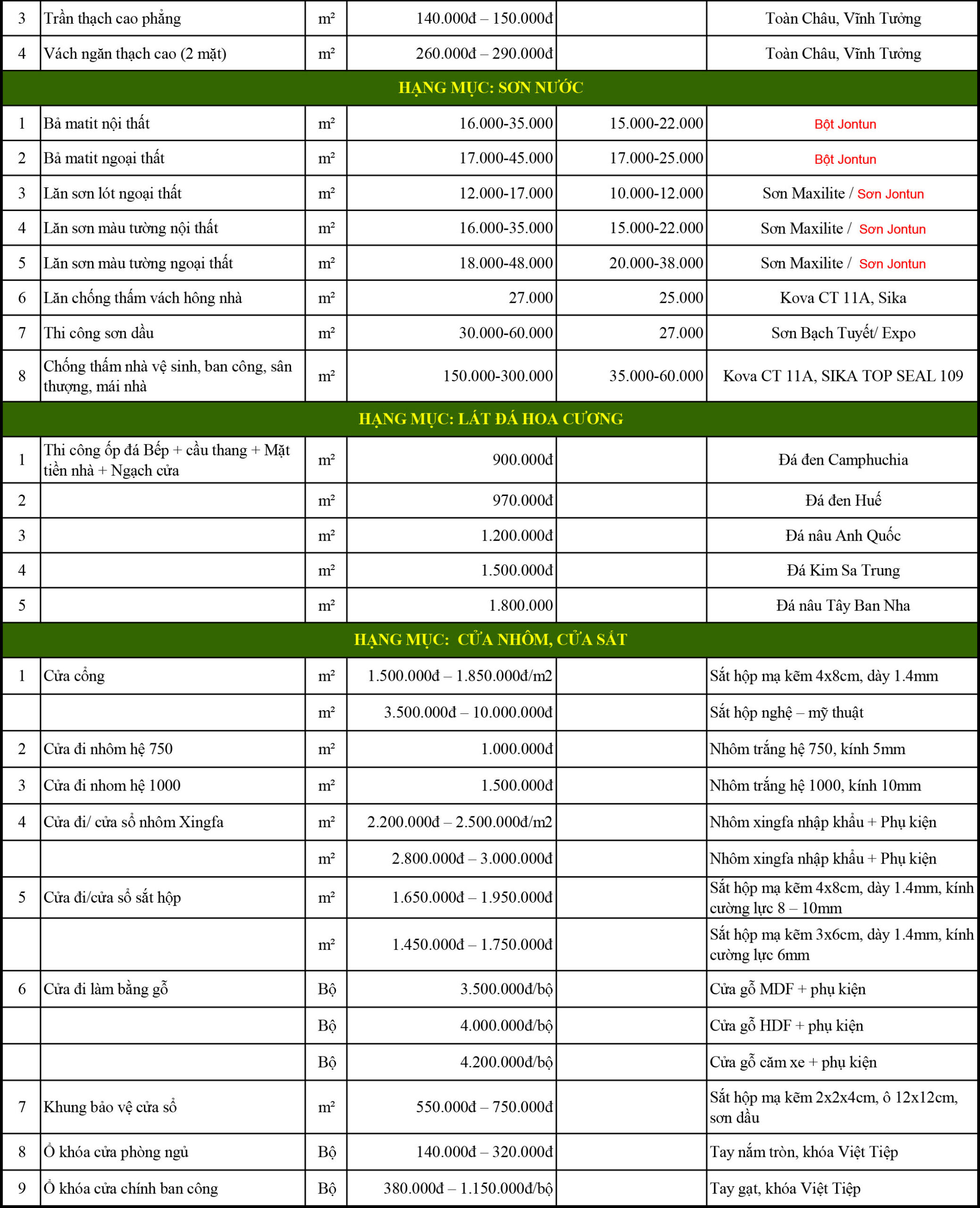 - Đơn giá ưu đãi: Chúng tôi là đối tác của các đại lý vật tư cấp 1, giúp tiết kiệm 10% – 15% chi phí nguyên vật liệu.